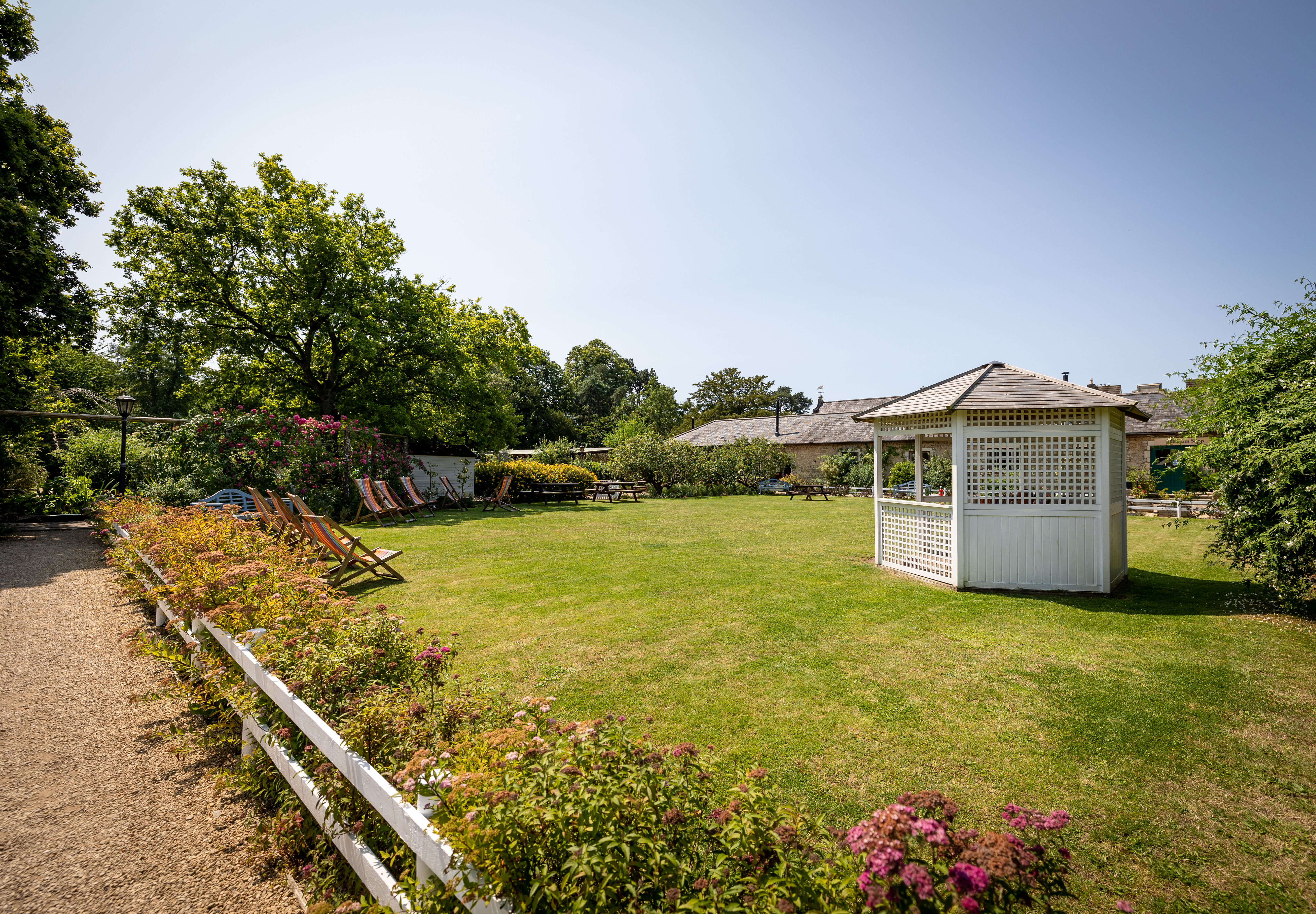 If an outdoor ceremony is part of your vision, The Folly provides a charming, weather ready space. This open-sided structure sits beside the Barn and overlooks the gardens, complete with climbing foliage and festoon lighting.